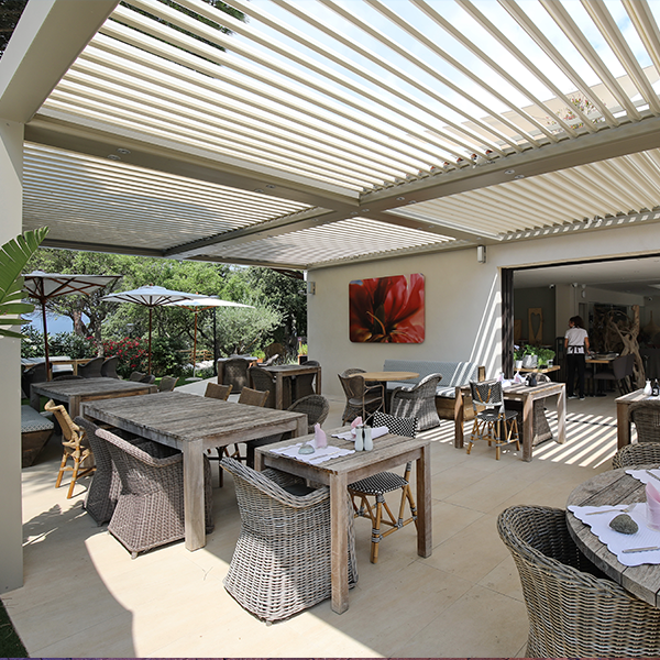 - Sun protection: With retractable fabric roofs, you can adjust the shade, protect the guests from damaging UV radiation while maintaining a bright, welcoming environment.